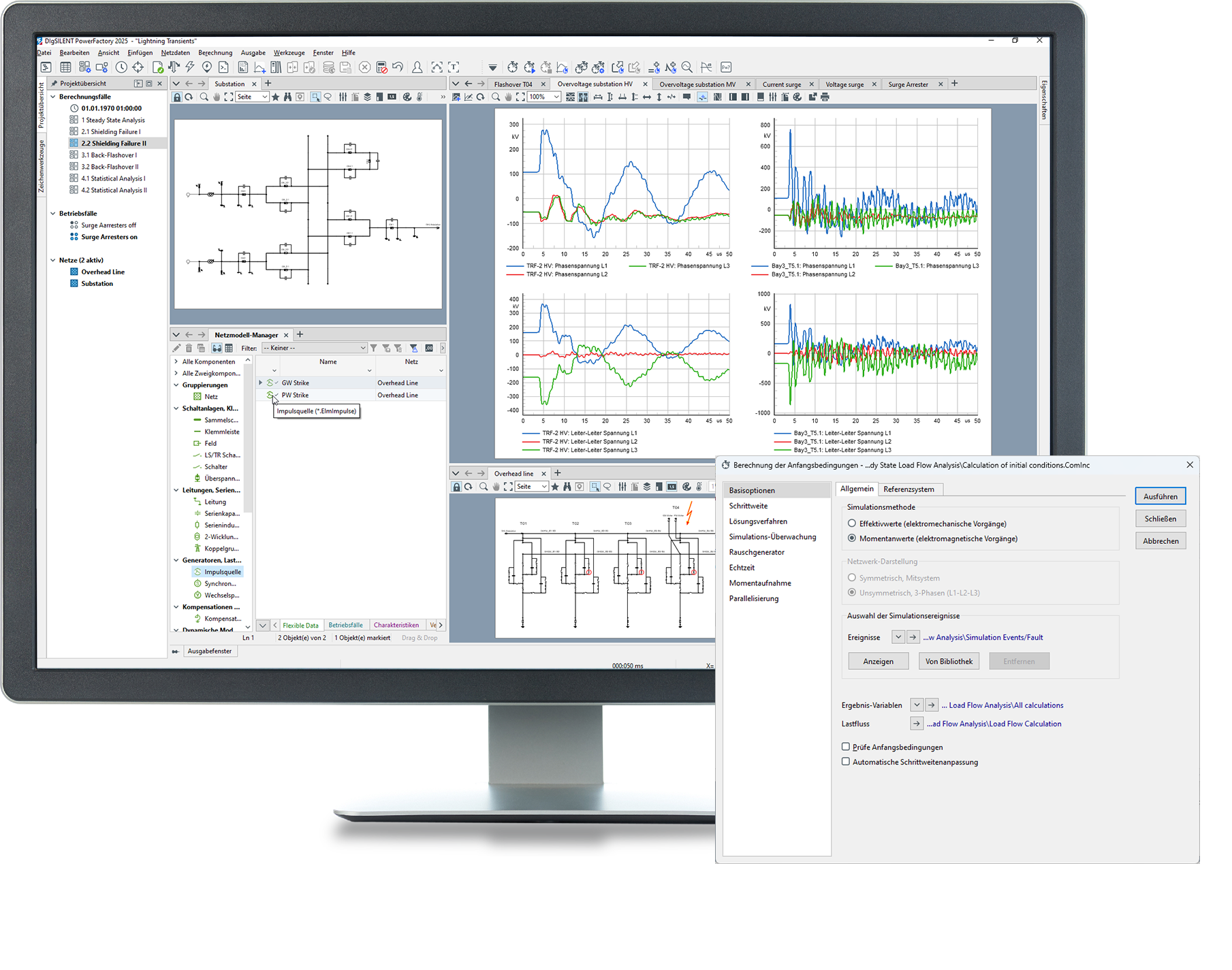 - Analyse der Isolationskoordination einschließlich vorübergehender (TOV), schaltender (SOV) und blitzartiger (LOV) transienter Überspannungen