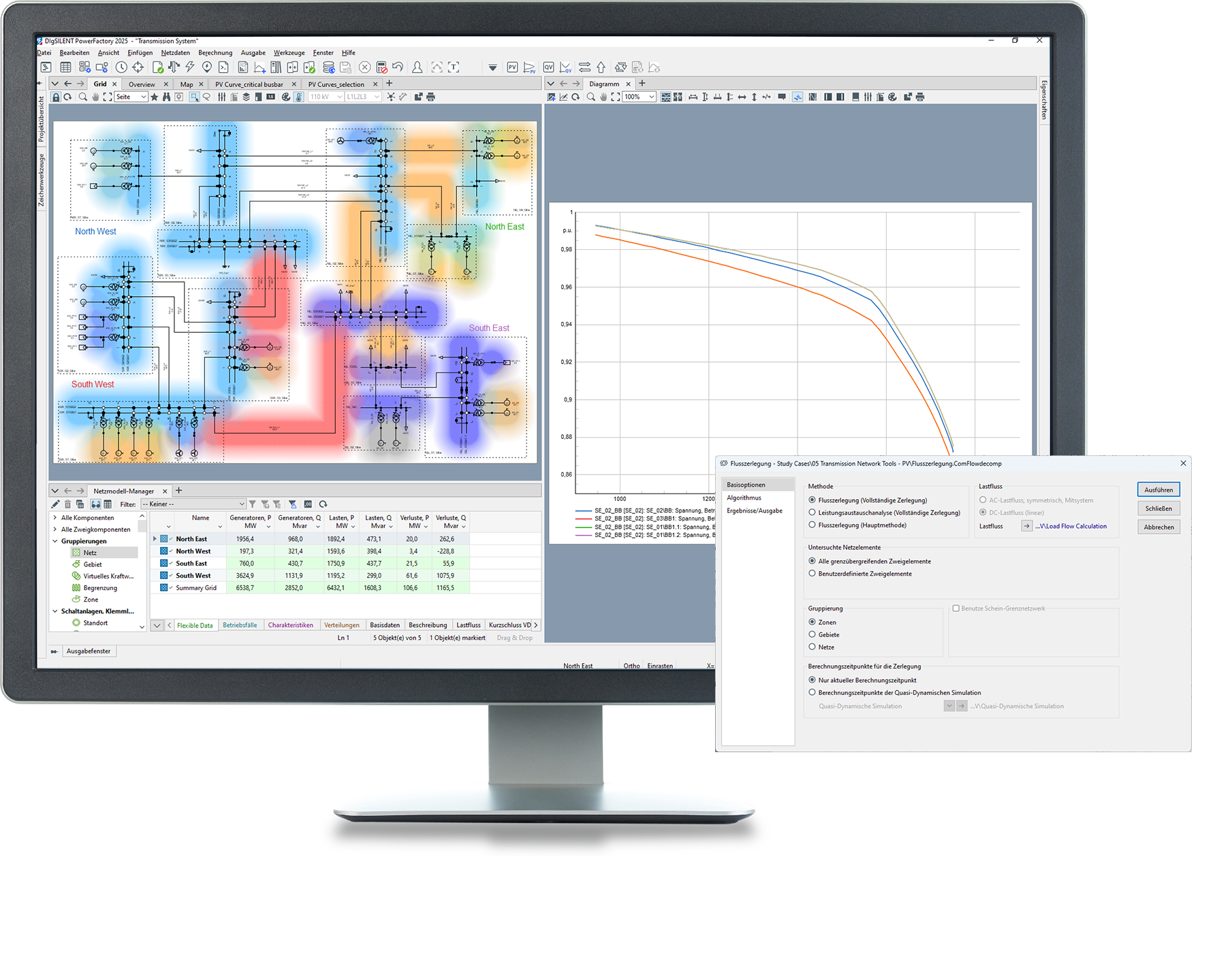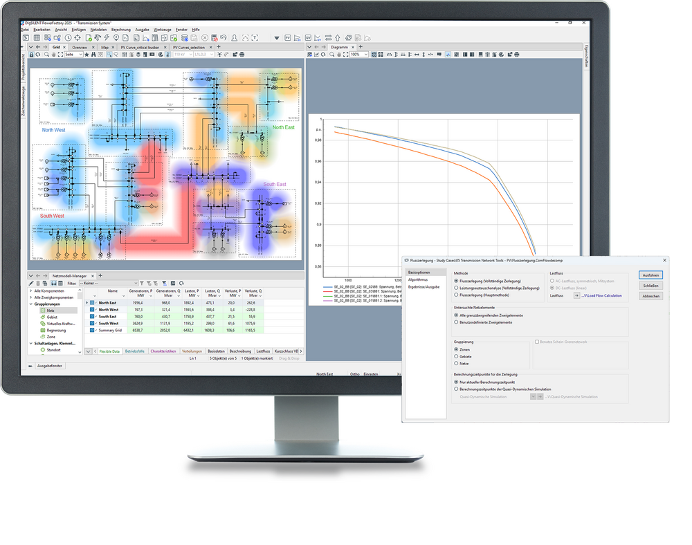 Diese für Betreiber und Planer von Übertragungsnetzen bestimmte Reihe von Funktionenbeinhaltet Optionen zur Analyse der Spannungsstabilität sowie des Leistungsübertragungsvermögens des Netzes, sowie eine Funktion zur Flusszerlegung.
