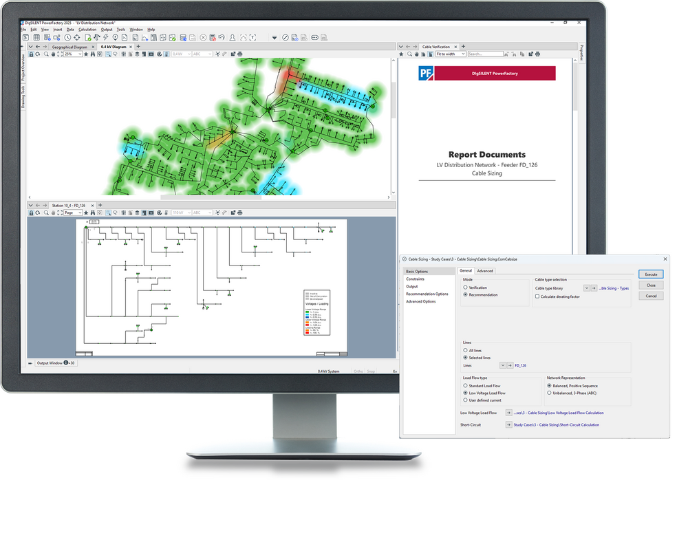 - Detailed reports and automatic modification of cable derating factors in the existing network via Network Variations