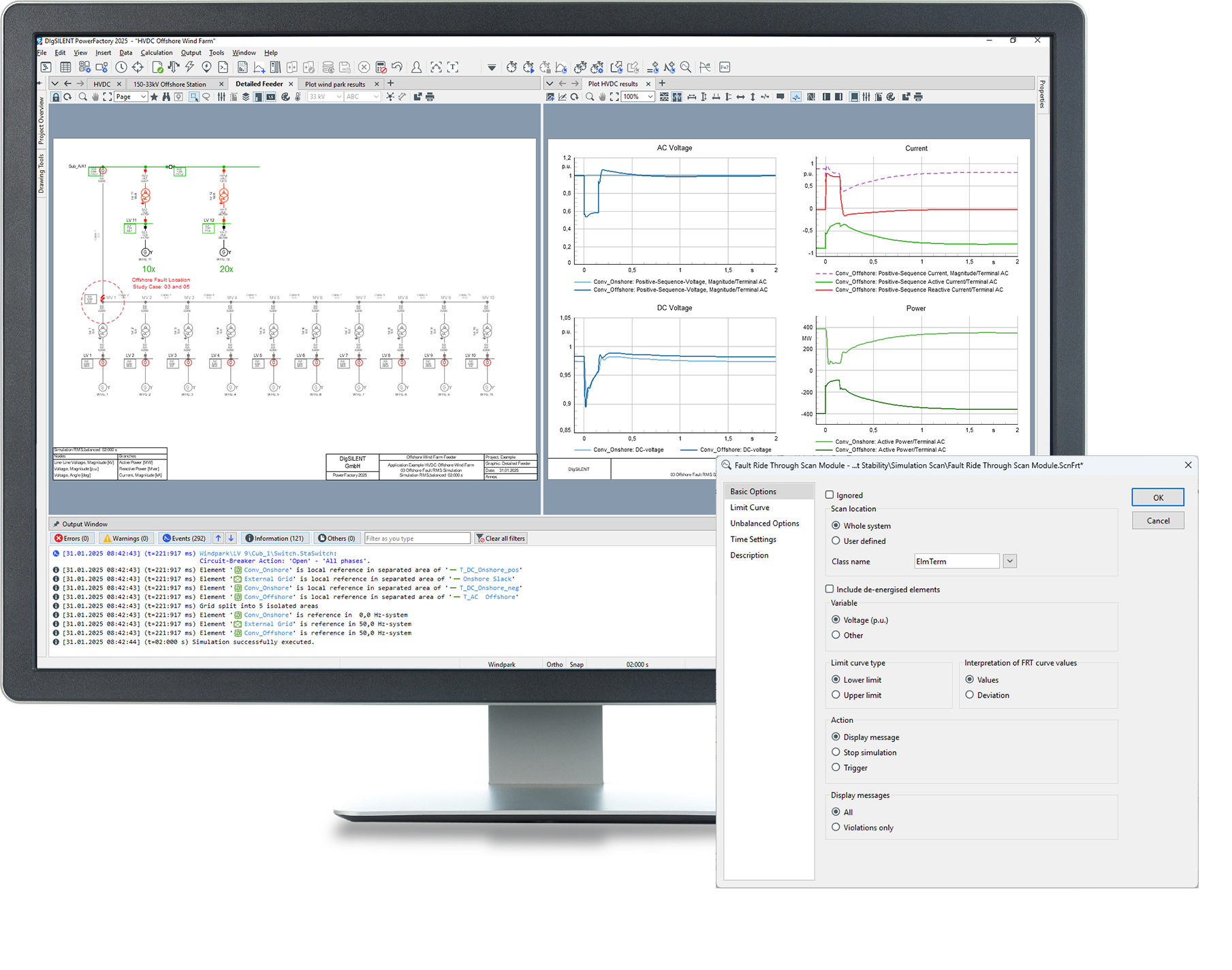 - Simulation scan feature, e.g. frequency scan, loss of synchronism scan, synchronous machine speed scan, voltage-/voltage recovery scan, fault ride through scan or common variable scan