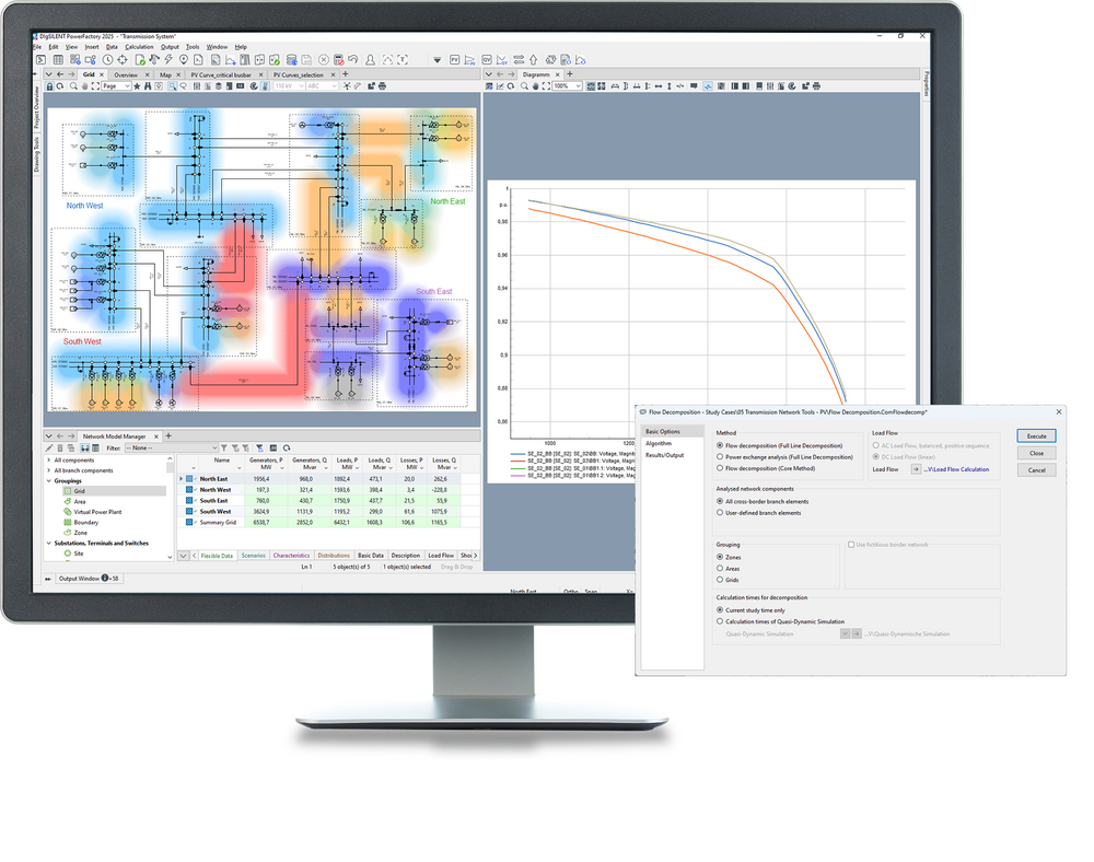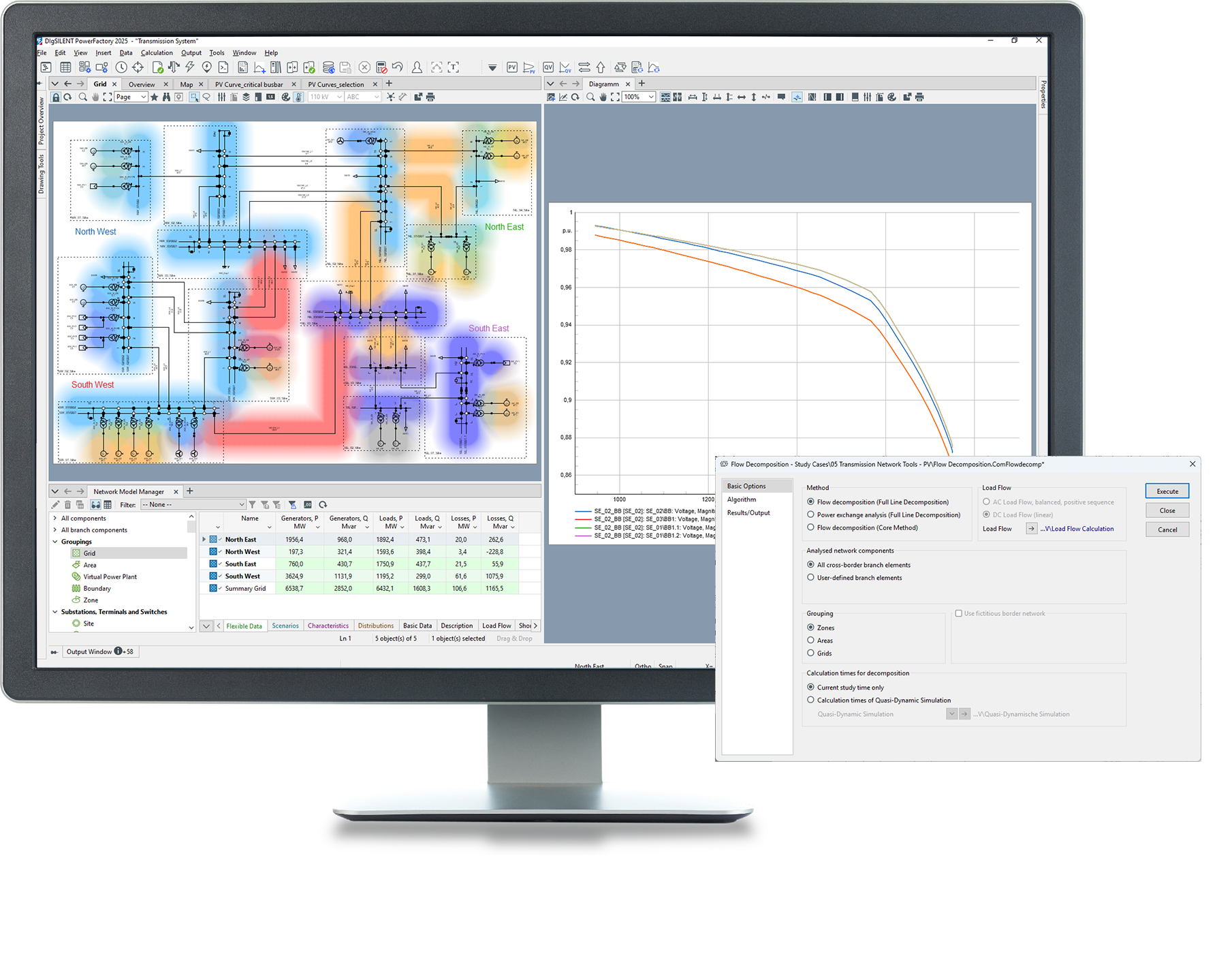This suite of tools aimed at transmission network operators and planners includes options for analysing the voltage stability and power transfer capabilities of the network, and a Flow Decomposition function.